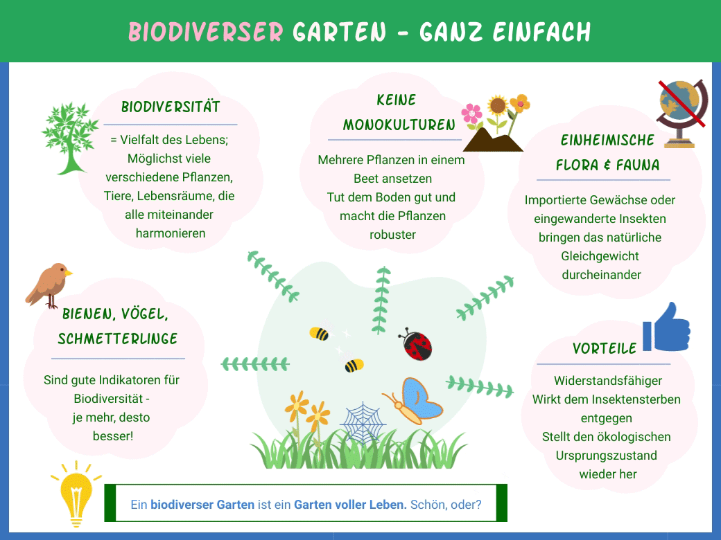 Wer seinen eigenen Grünflecken in ein Biodiversitäts-Paradies verwandelt, hat so einiges davon. Biodiverse Gärten sind