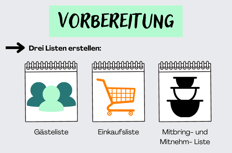 Wenn du eine Mitbringparty planst, schreibe auf jeden Fall eine Liste, bevor die ersten „Nudelsalat“ rufen können. So vermeidest du eine Nudelsalat-Flut, die nur zu weiterer Lebensmittelverschwendung führt.