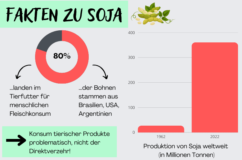 Das Soja, was wir direkt konsumieren, ist also in jedem Fall nachhaltiger, als tierische Produkte, in denen viel größere Mengen Soja drin stecken.
