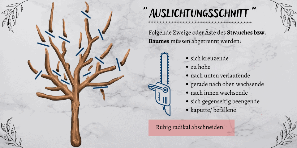 Bereits vorhandene Sträucher und Bäume können zum größten Teil zurückgeschnitten werden – eine bildliche Anleitung dazu gibt es nachfolgend.