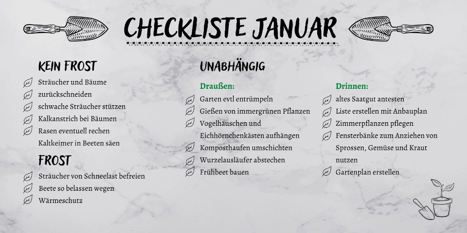 Im Vergleich zu anderen Monaten ist auch dein Garten gerade eher im Ruhe-Modus, dennoch freut er sich, wenn du ein paar Dinge an ihm vornimmst.