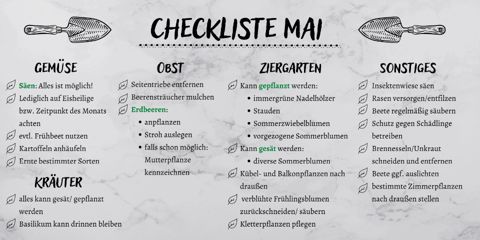 Wie immer findest du alle wichtigen Punkte noch einmal in der Checkliste für diesen Monat zusammengefasst: