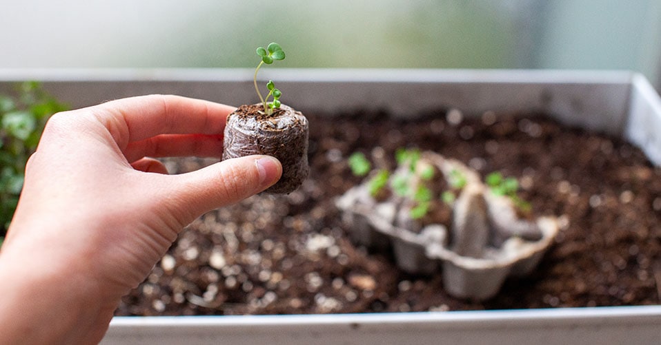 Umtopfen oder Auspflanzen von Jungpflanzen in Kokos-Quelltabletten