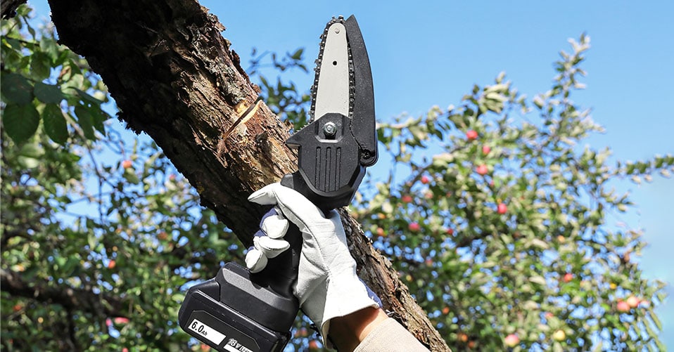 Mini-Kettensägen mit Akku können überall dort verwendet, wo kein Anschluss an das Stromnetz möglich ist. Gleichzeitig läuft man nicht Gefahr, das Kabel der Mini-Kettensäge versehentlich zu durchtrennen.