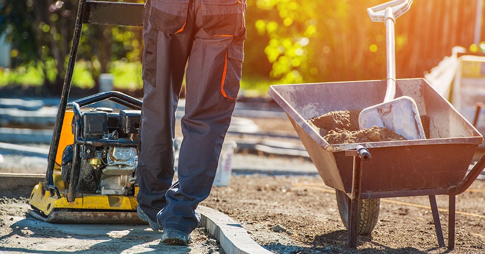 Mit Rüttelmaschinen verdichten die Gärtner auf ihrem Grundstück verschiedene Untergründe wie: