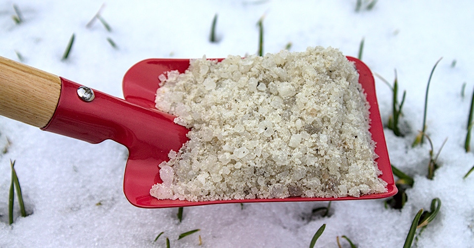 - Mit reinem Streusalz, das nicht mit Sand gemischt ist, vermeiden Sie Rückstände auf dem Boden nach dem Abschmelzen von Eis und Schnee.