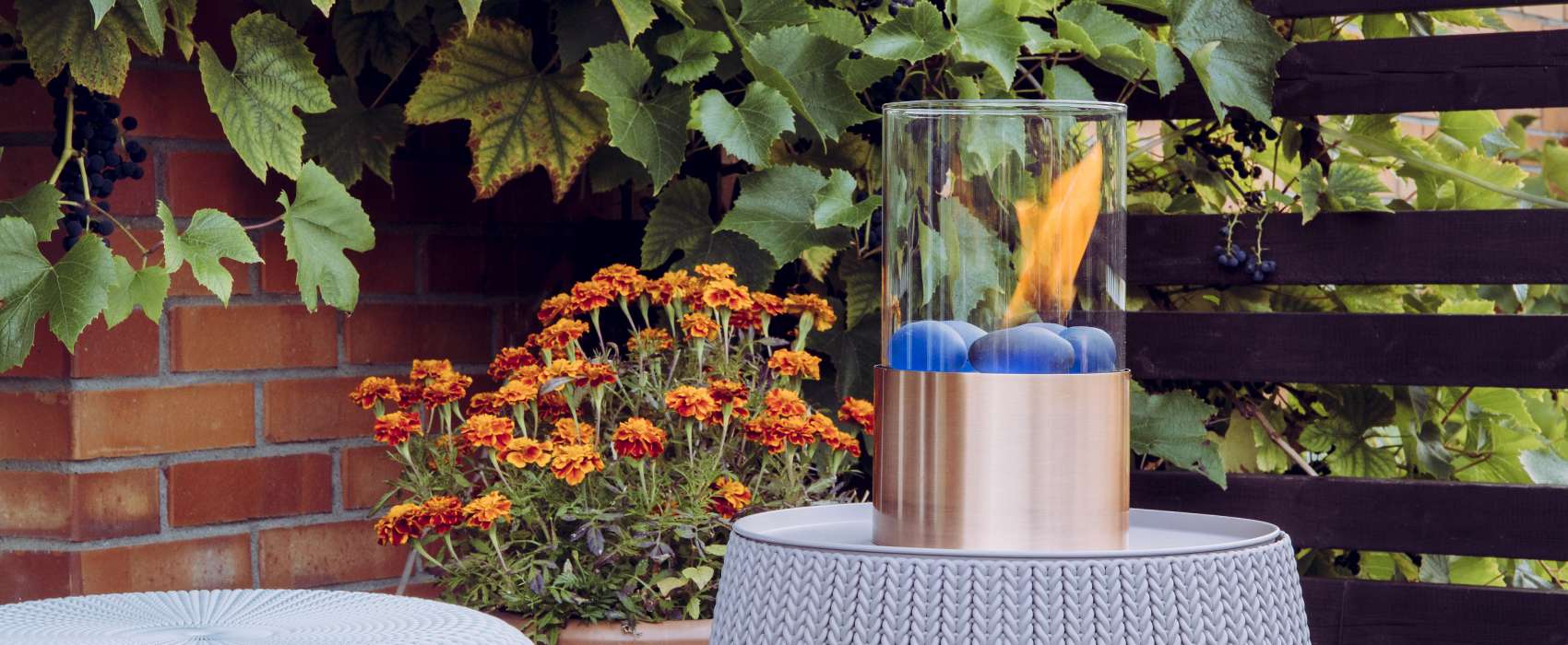 Outdoor-Tischkamine mit Ethanol haben kompaktere Abmessungen und können fast überall aufgestellt werden. Damit eignen sie sich auch für den Balkon.